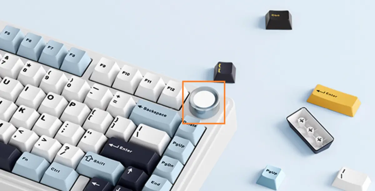 독거미 키보드 F75는 다른 모델에는 없는 노브가 있습니다. 노브의 활용은 볼륨 조절, 라이트모드 조절 등 멀티 다이얼로 많이 활용됩니다.
