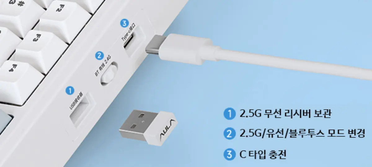 - C타입 포트는 독거미 F75 키보드 상단 (이미지 3번)에 연결
